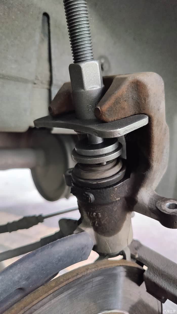 4用回位工具将分泵活塞 顺时针压回到底。压时注意不能让活塞上的胶套跟着一起转,容易损坏胶套。