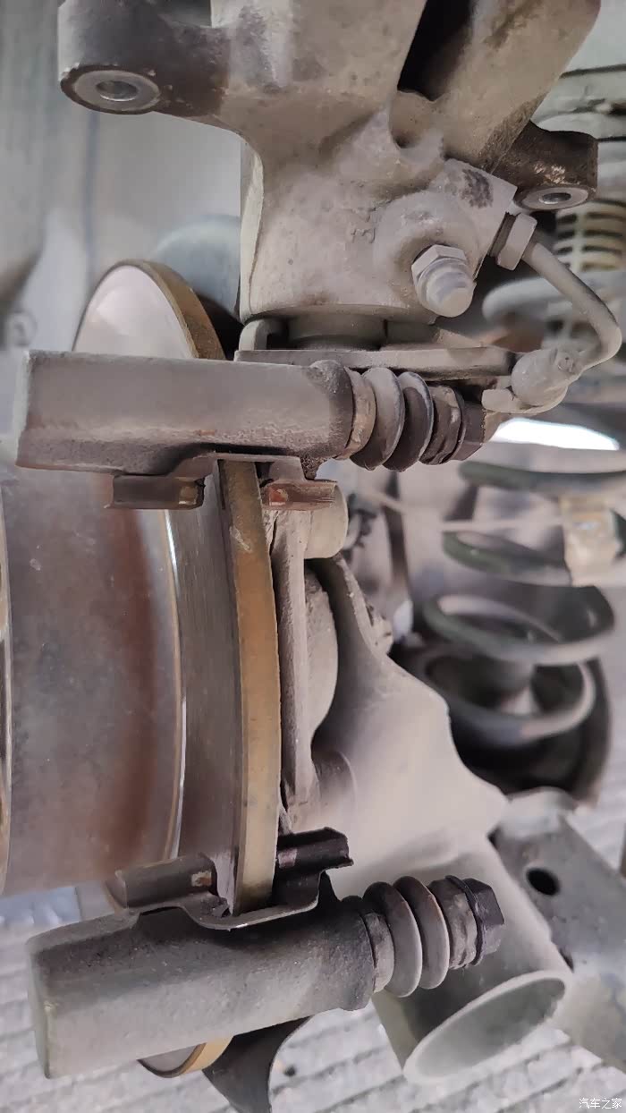 1拆下一边轮胎,用毛刷 清理分泵表面灰尘,特别是 导向销 ,刹车片导轨,刹车盘和轮毂接触的地方。 再喷除锈剂,比较容易拆。