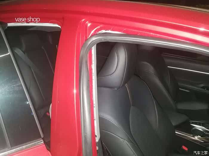 B柱左侧密封胶条扒开(从上角位置拉出即可)