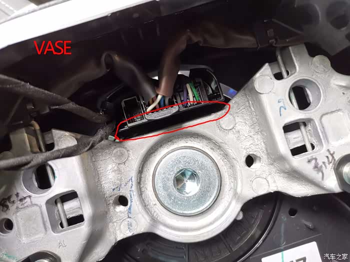 方向盘异响主要来源。这个多功能插座。圈圈处