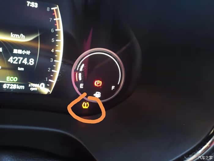 二、仪表盘出现一个像叉子的图标——胎压异常