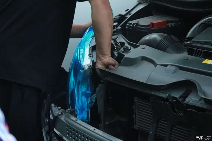 说干就干,师傅拆开前车盖板和保险杠,取出原车大灯。