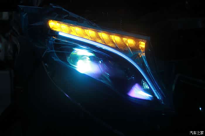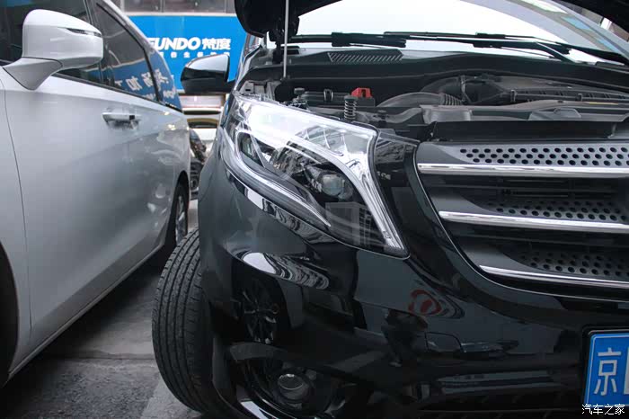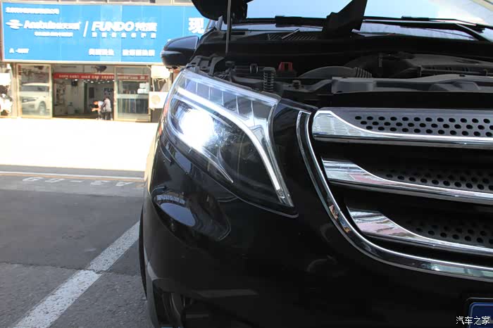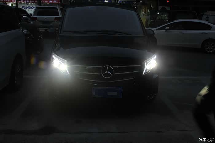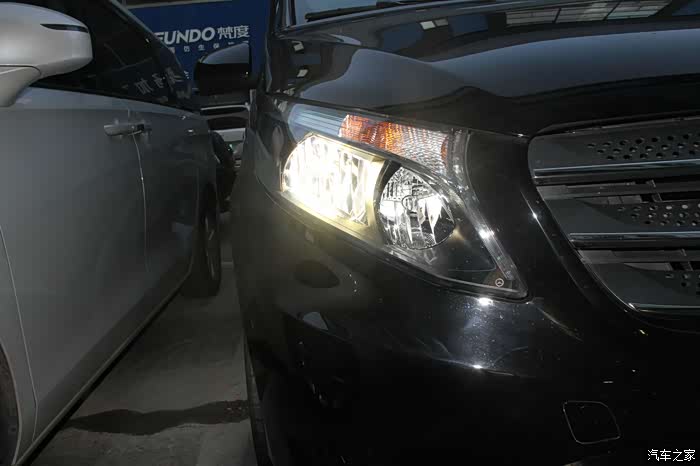 奔驰威霆提车一月有余,该车内部空间足够大,家庭、商用两不误,30万价位区间能买到一款奔驰MPV,还是相当有面子的。唯一不足的是原车大灯配置的是卤素光源,原车车灯看着呆板、空洞无神,毕竟原车没有透镜,聚光度很有限,而且那个亮度~光线偏黄,照射距离近,照射范围小。这种方法能满足不经常走夜路的人,晚上开车简直就是在摸石头过河,对于近视500的我实在是摧残,买车就是为了更方便,坚决不能将就,于是想到了升级光源,而且是必须,因为关乎到行车安全,不能马虎。但因为对改灯比较小白,开始打算直接更换LED灯泡,后来补习了很多知识才知道,如果单独改灯泡,不带透镜的光线会非常发散,不能改变视线的问题,于是便想到了直接更换总成,方便又省心,而且还不用担心会对爱车造成损伤,还有就是总成还带有日行灯,换完后豪华上档次,内外兼修,所以心动不如行动,立马到店更换大灯。