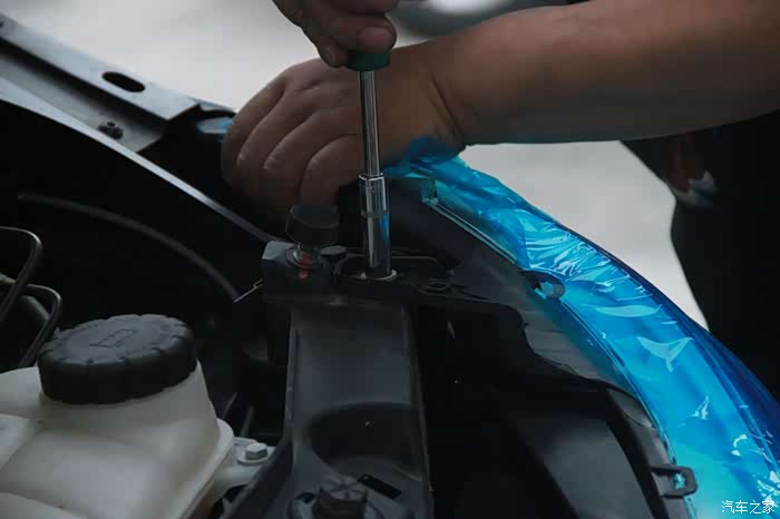 然后把前保险杠固定,最后再盖上引擎盖,换下来的原车灯留着备用。