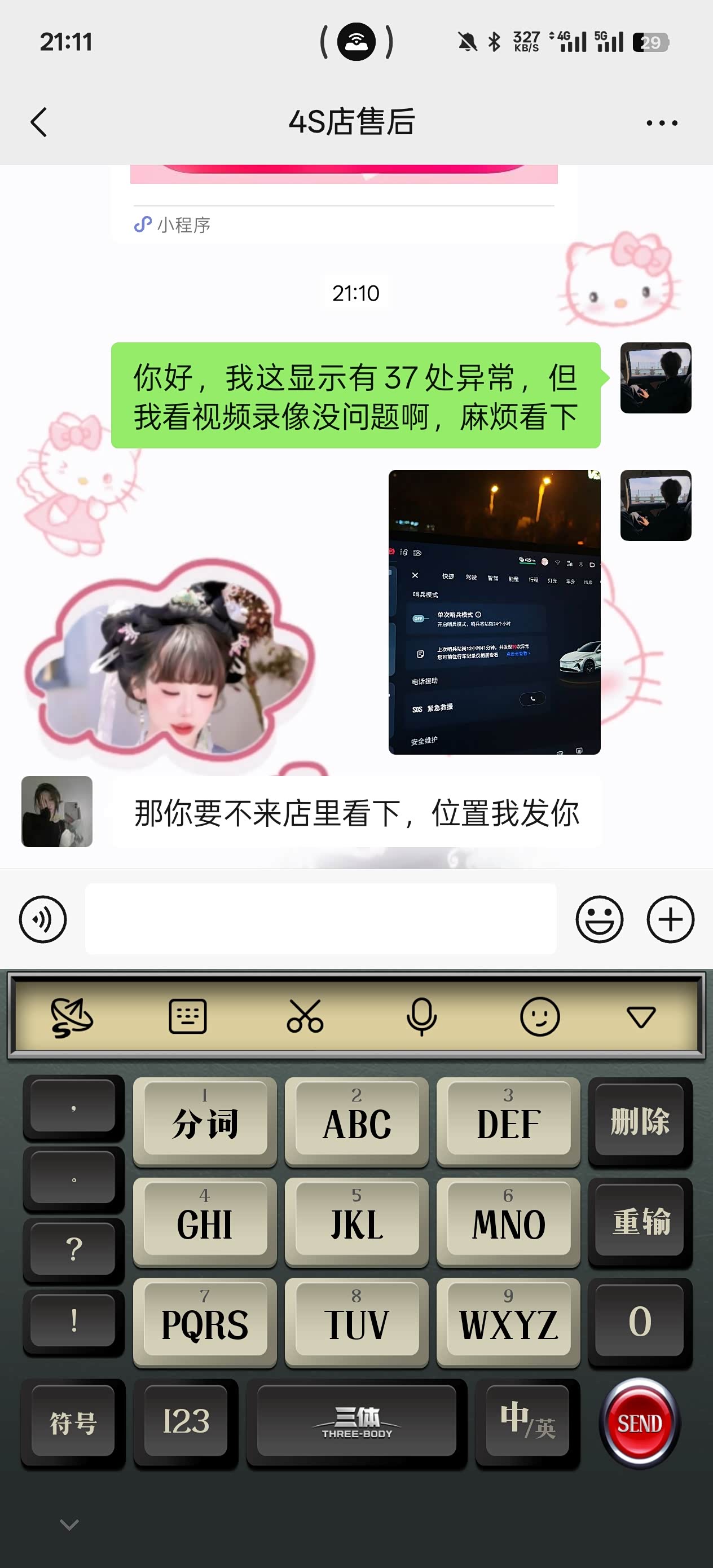 事情是这样的:晚上9点多,我刚停好车,手机突然“叮叮叮”狂响。打开一看,app小程序发来一串提醒,说我的车检测到37处异常!可我当时明明锁车走人了,周围连只野猫都没有啊!