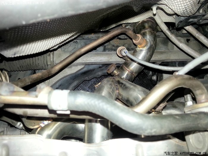 顺利安装,接上前后氧传感器和废气管。。。预留一个孔给外挂氧传感器,方便调电脑时读取空燃比