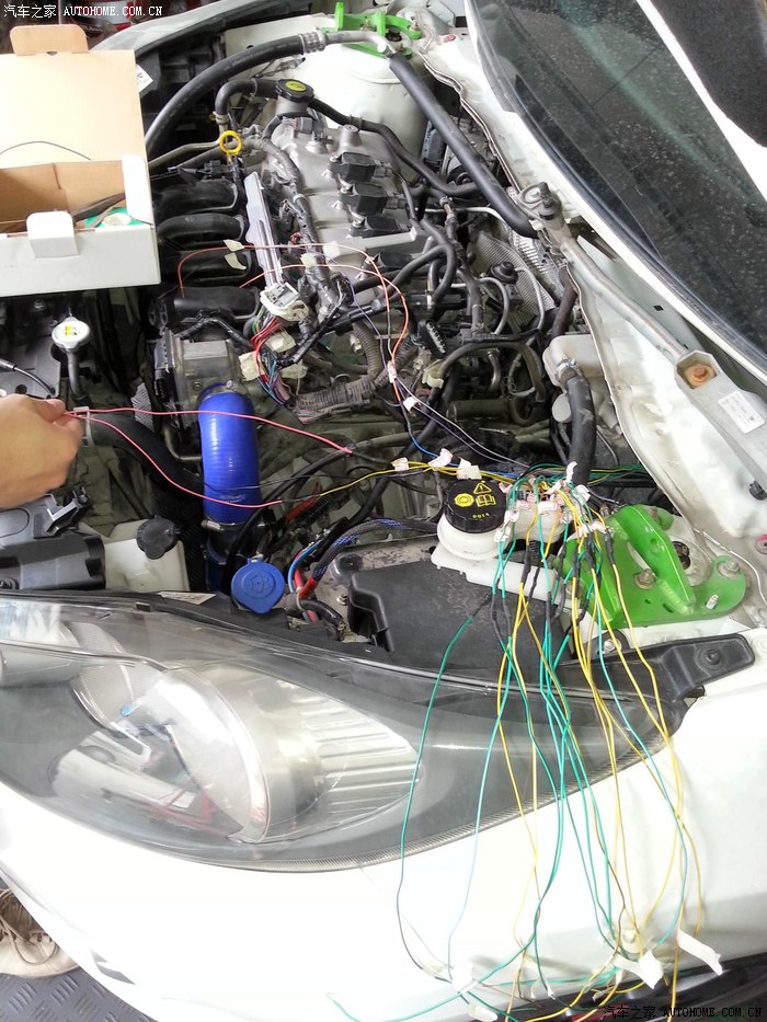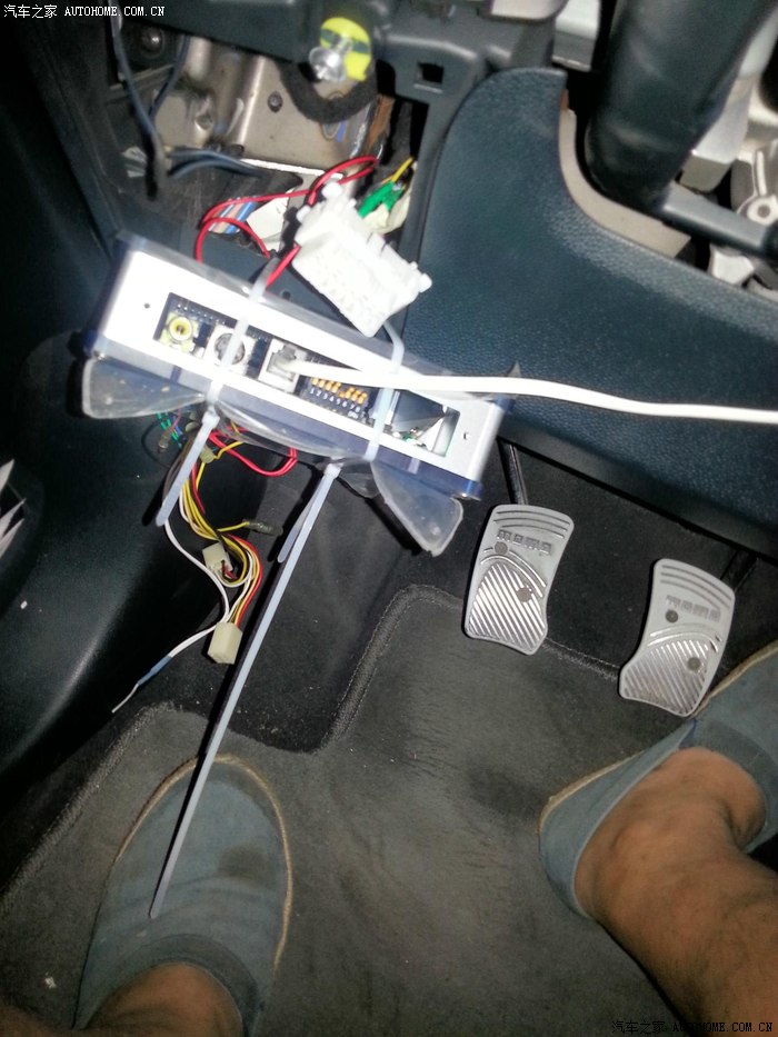 暂时固定外挂电脑,接上氧传感器和空燃比计,连接笔记本。。。鞋有点脏献丑了。。