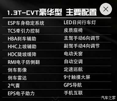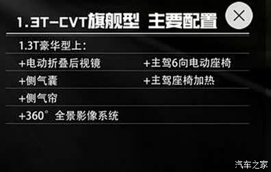 这是官网的旗舰型配置表,同样没有无钥匙进入+一键启动、行车记录仪、胎压监测和副驾驶电动调节。