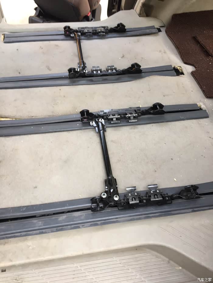 原来座椅使用频率高,磨损严重,不说破,绝对谈不上好看了,主要拆卸不方便、后来一琢磨,买套拆除件座椅,看来看去还是丰田系列,比较这个传承了丰田,大霸王没有新车pass,剩下塞纳了,一顿操作买座椅与轨道,滑轨不能通用,虽然没有试、凭直觉用不了,买回来一试、果然不出所料!轨道比原来的要长,切割焊接,比原来轨道间距仄2公分左右,固定孔也不对,焊接,买5公分宽度角铁切割焊接打孔喷漆,还是要用汽车地板的孔,用原来的螺丝固定,这样不破坏原车,破坏原车就容易生锈!安装比较粗糙了点,第一次没有注意轨道正反、白忙活了!提供一顿操作最后座椅安装完成!虽然不完美,主要是图快了,凑合