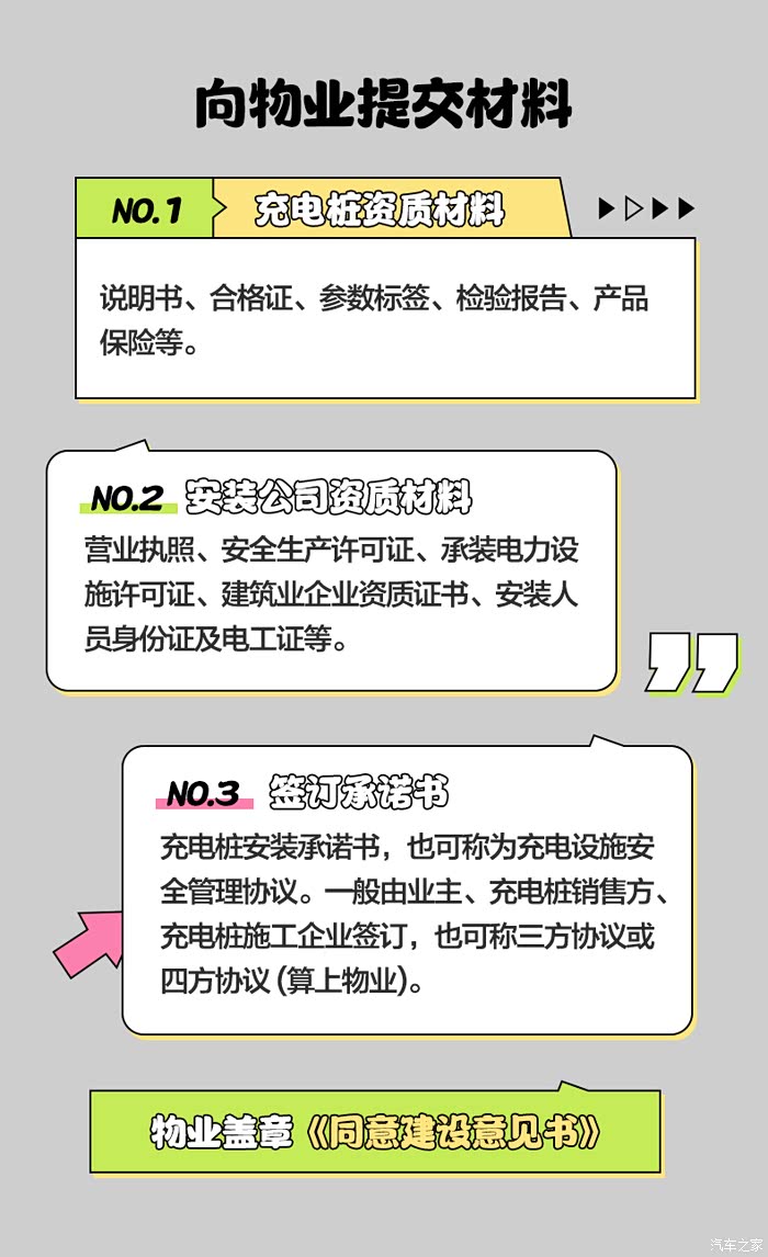 每个小区物业对安装充电桩要求的材料不一样,有的小区审核严格,不过再严格的小区,也基本上就上图这些材料。