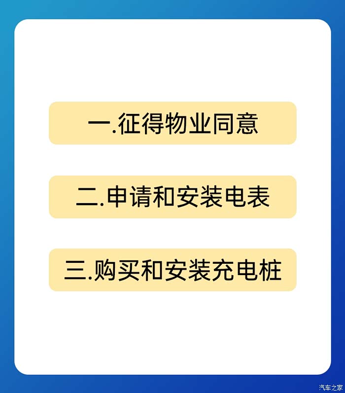 安装家用充电桩主要分为三大步,第一步是搞定小区物业或村委,咨询安装充电桩需要提供哪些材料。第二步是向供电局申请安装电表;第三步是选购和安装充电桩。