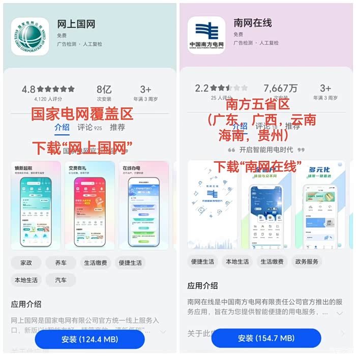 南方电网覆盖区域(广东、广西、贵州、海南、云南五省),是下载“南网在线”。