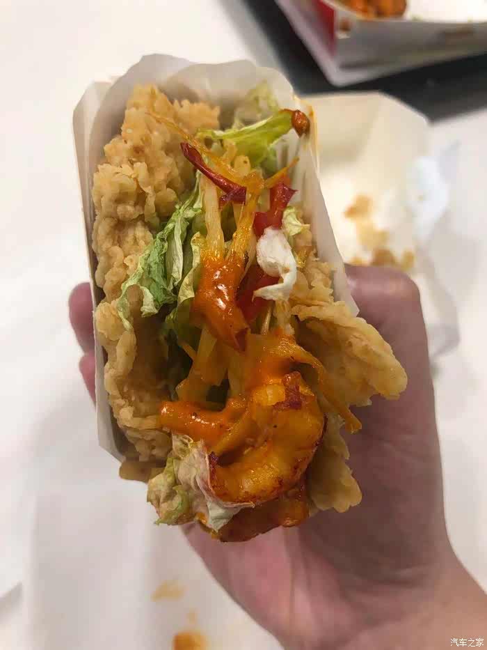 正宗塔可是面皮的,类似卷饼,肯打鸡的居然是鸡排,很有想法,虽然不正宗,但是很好吃,哈哈~