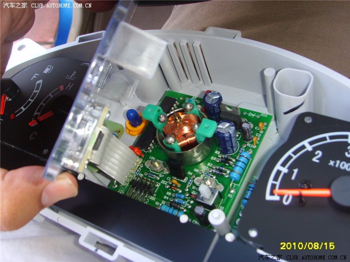 拆卸过程我就不说了,简单的很,注意点拆螺丝,用大力去掰开那个盖子就行了,不要怕,坏不了!仪表总成拆卸下来的样子,里面没有任何不干胶一类的东西,随意拆卸没有问题!还可以顺便擦擦干净表面,这样看起来就干净多了。