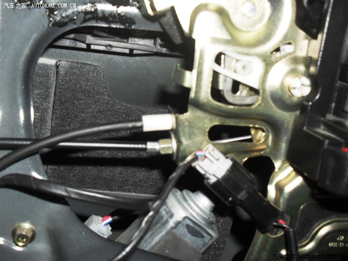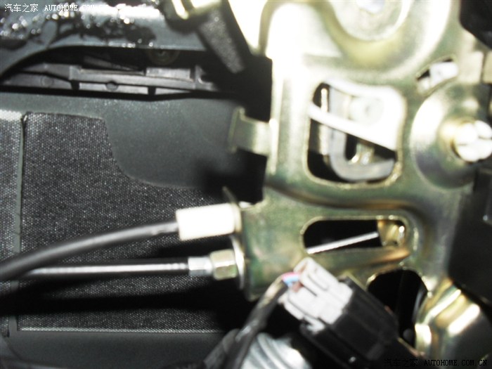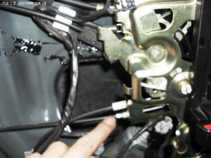 V80有2个开锁拉线位置,好像是故意预留的。下面那条就是我加装的