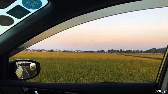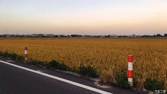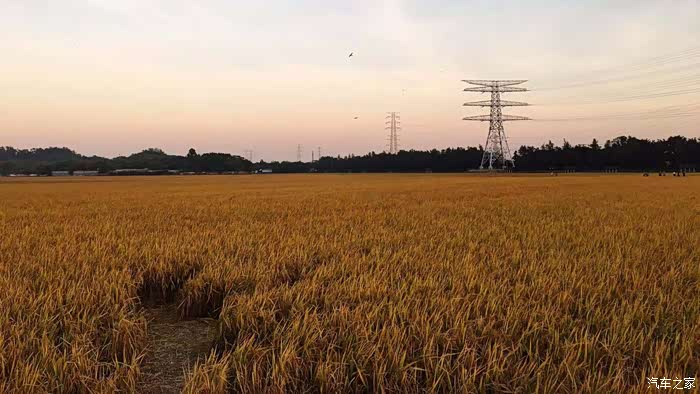 京珠高速翠亨出口,也是一个网红打卡点,到了稻米成熟之际,金黄的稻田在落日余晖映照下,映衬着耀眼的图腾,是否有种原始的田野美感和气势