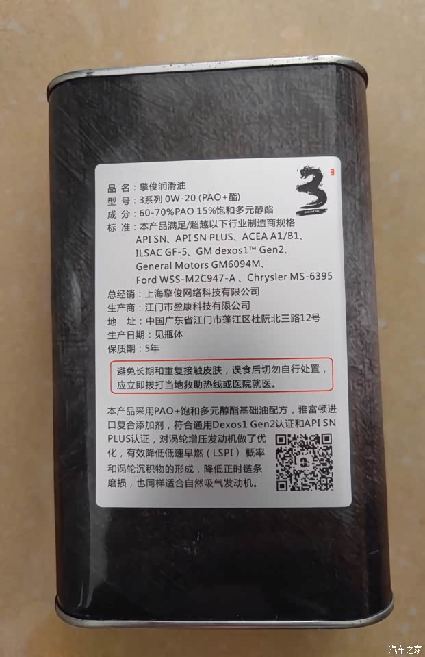 使用机油,第三国际特调0W-20老版本,60-70%PAO,14-15%多元醇酯,不含有机钼和mPAO,属于第一代配方