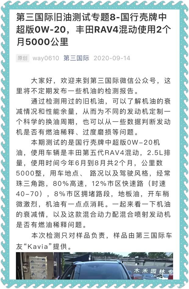 RAV4混动跑了7000公里的废油实测数据