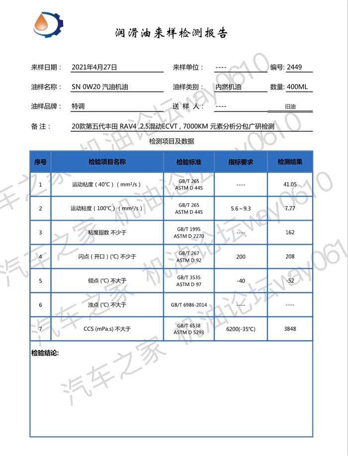 机油送检第295篇-丰田RAV4 2.5混动废油及元素分析
