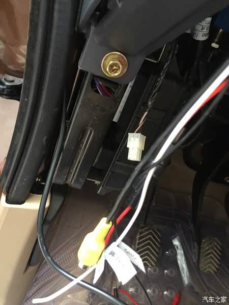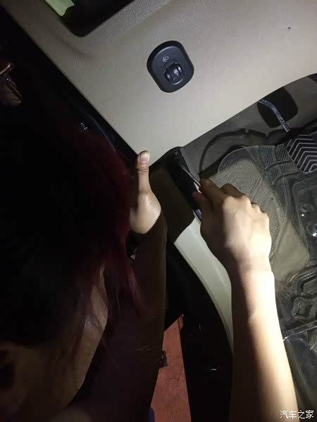 接下来就是布线了。这里需要一根撬棍,可是店家居然没送。撬棍是布线必备的工具,就是用来撬开内饰板,把电线隐藏在内的一个塑料扁型的像雪糕棍的工具。什么样子的,自己上网查啊。