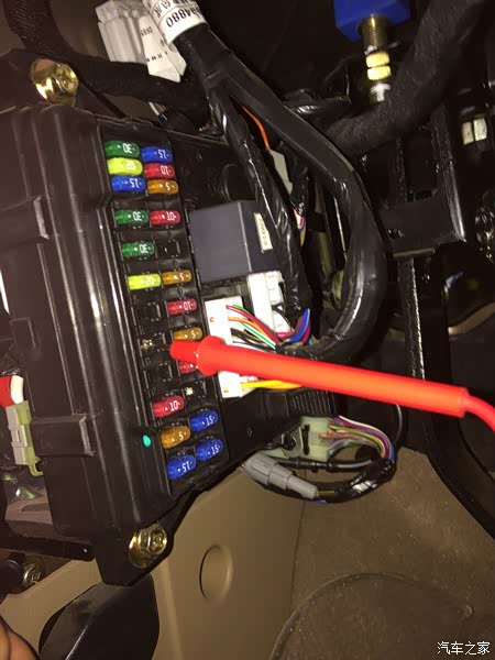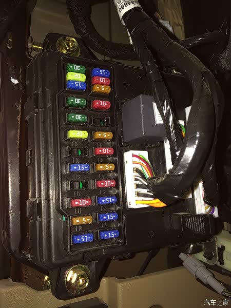 布到保险盒后,是这个样子的。接下来就是接保险盒取电了。有些车友嫌麻烦,直接在点烟器取电。我是这次就是为了布暗线在保险盒取电。 那么接下来最关键的环节,就是如何从保险盒取电了。