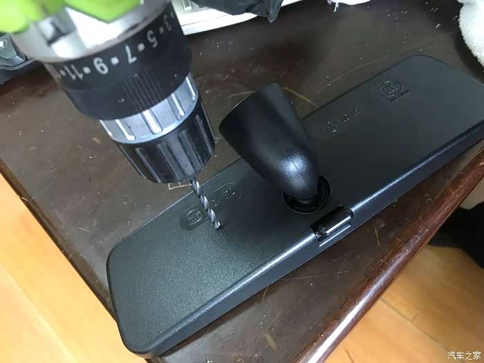 这次不能固定在玻璃上了,在后视镜壳上打孔