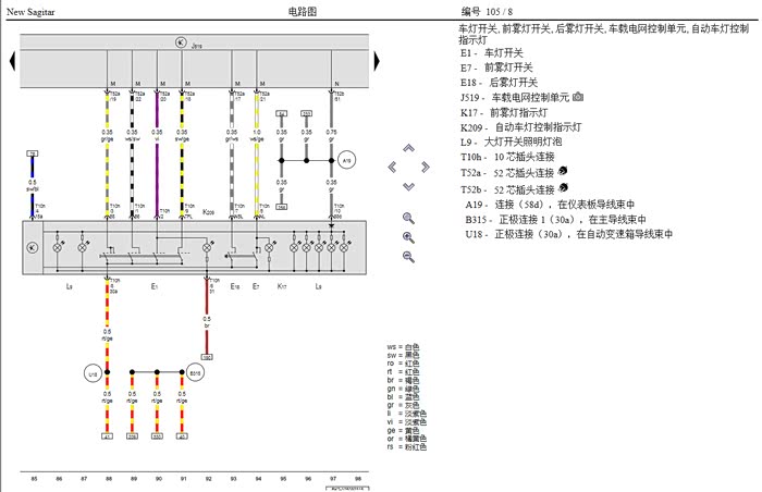 19款速腾的资料目前还找不到,这时16款速腾的电路图,大灯开关引脚是一致的。