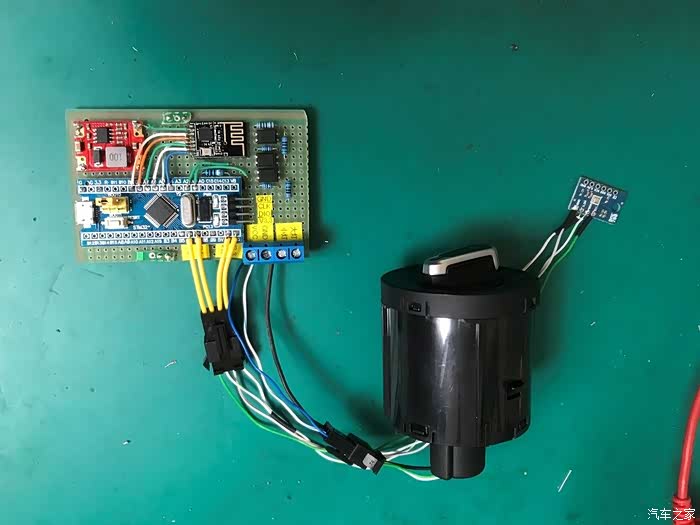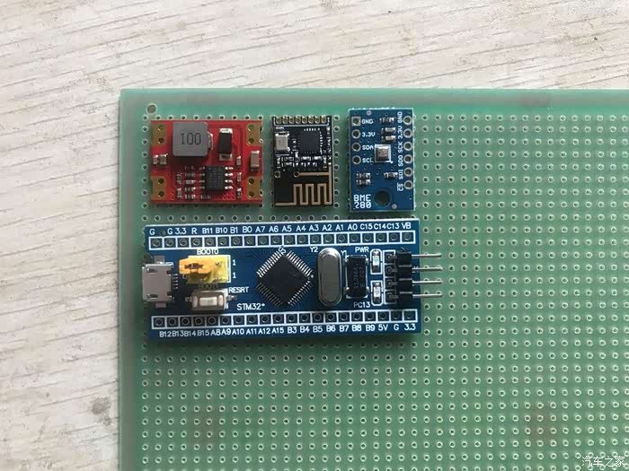 红色的是12v转3.3v供电模块,黑色的是Si24R1无线数据传输模块,旁边的是博世BME280温度湿度气压传感器模块,下面大的是主控芯片,因为气压计算函数要用到64位数据,所以主控MCU和后视镜的不一样,用的是32位MCU,后视镜那个是8位的。