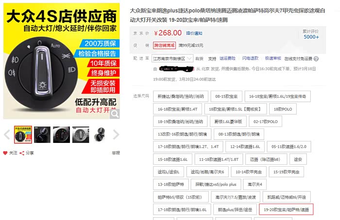 看到标题估计有人要纳闷了,什么叫做半自动大灯?我买的19款速腾配置是手动舒适版,原车只是个手动大灯开关,其中最大的不方便,对于我来说不是忘了开大灯,而是有可能忘了关大灯。因为仪表盘上有光线感应,白天有背光,外边光线暗了以后,仪表的背光会熄灭,这时就看不清仪表刻度了,或者夜里开车,不开灯完全看不清仪表刻度,这些情况刚好提醒了你得开大灯了。所以说开灯是不会忘的,但是反过来就不一样了。打个比方说,白天从地下车库开到地面上时,就很容易忘了关大灯,大白天开着大灯行车,对我来说是很傻的行为。