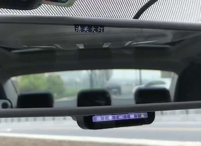 通过光线传感器感知明暗变化,无线模块传回大灯开关的状态,如果需要改变大灯的状态(即需要拧大灯开关),在内后视镜的OLED屏上与蜂鸣器同时进行提示。
