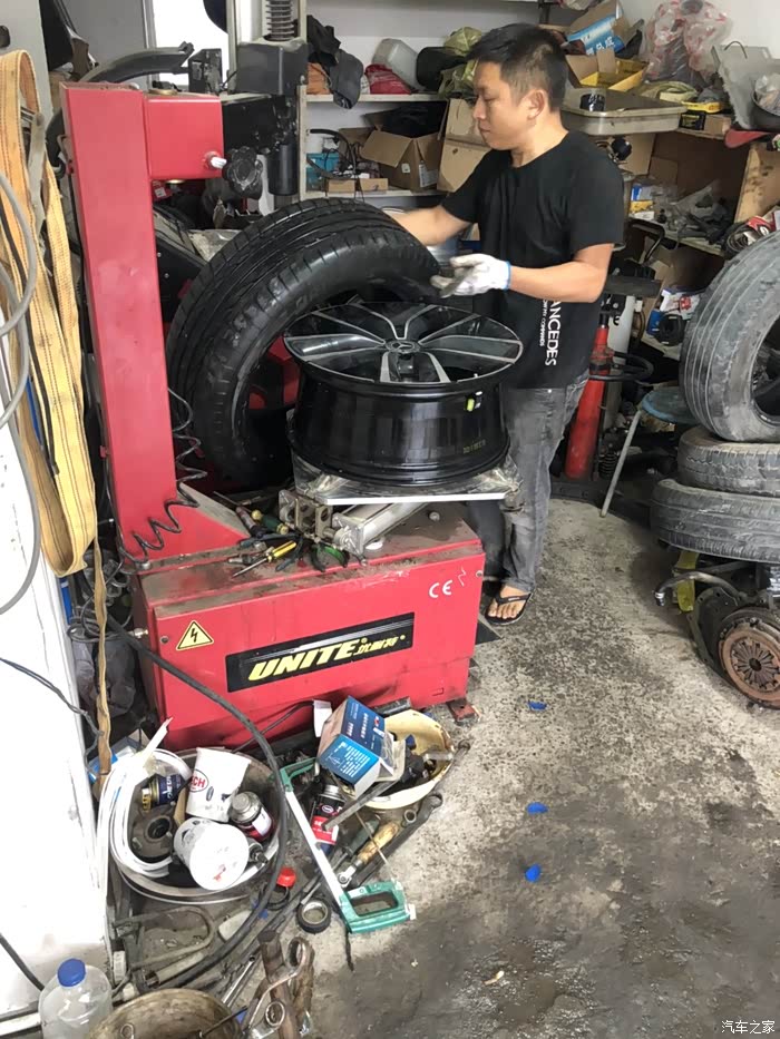 拆轮胎,还好只是扎了个洞,要是划破了就损失惨重。