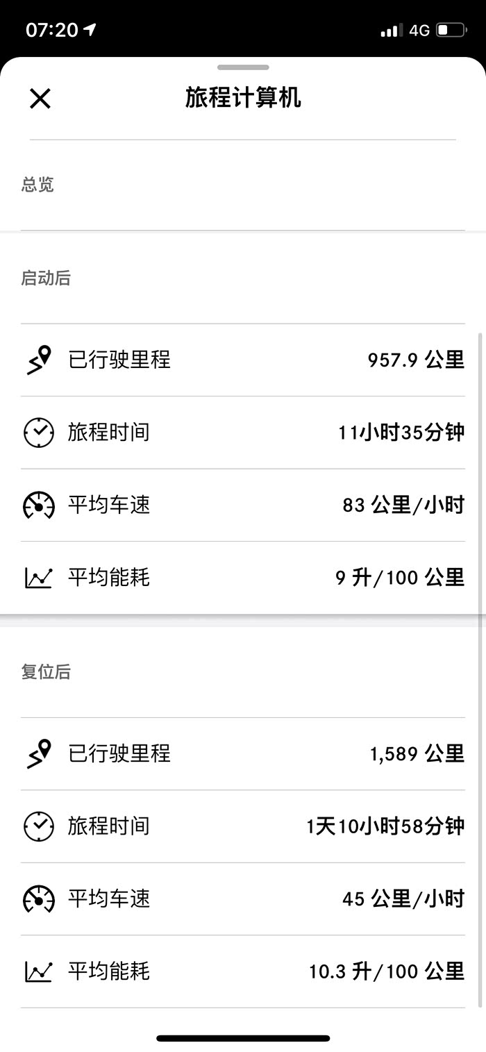 启动后行驶里程957.9公里,平均油耗9个油