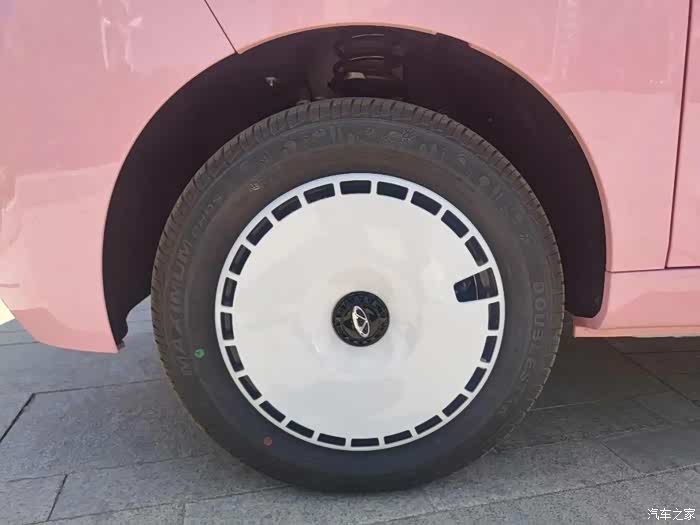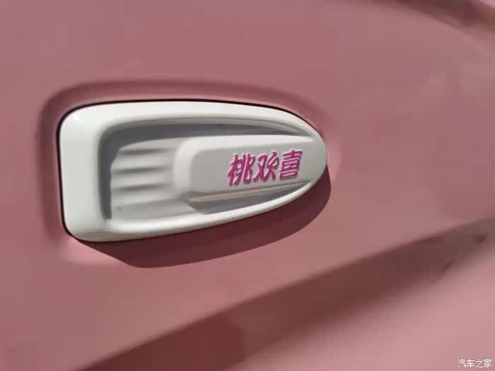 车身侧面,新车的造型十分的方正,加上造型平整的轮毂装饰盖,不仅使其看上去十分的简约,还为喜欢个性装饰的小姐姐们提供了充足的贴图空间。另外,新车还在左右前翼子板还有左侧C柱增添了桃欢喜专属的车标,充分彰显自己与众不同的身份特征。