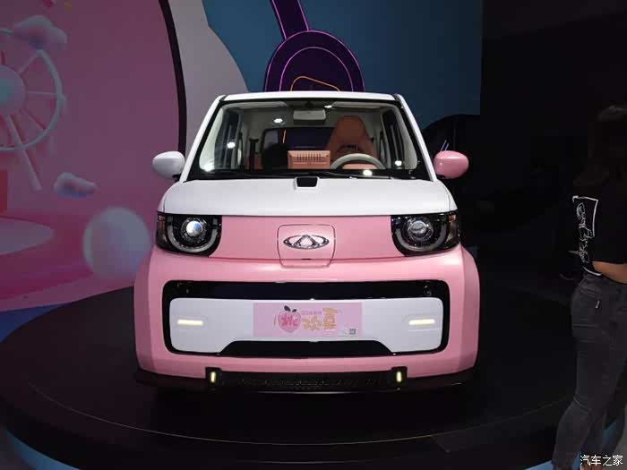 外观上来看,新车是在奇瑞QQ冰淇淋的基础上进行了调整升级,车身整体以粉色为主色调,加上白色的饰条,让整车看上去就十分的清爽可爱。前脸依然采用的是电动车常用的封闭式的进气格栅,搭配上两侧“U型”的大灯,视觉上更加可爱呆萌。