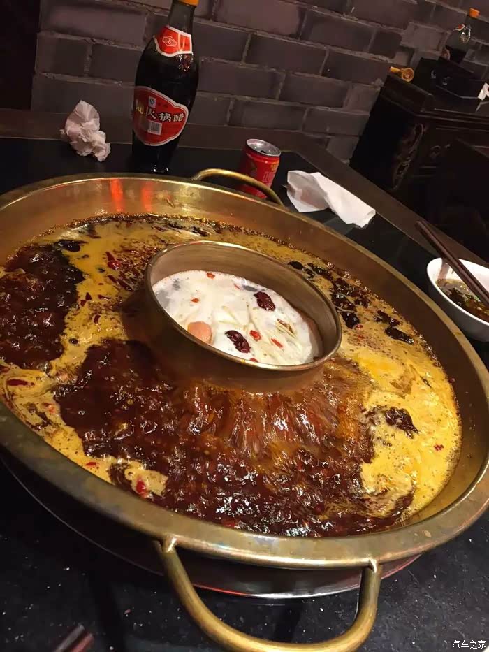 到达成都的第一天晚上,既然来到四川境内,不尝尝正宗的火锅不是白来一趟吗?在宾馆附近有一家川西坝子的火锅店,晚上8点,门口排队的就有50多桌了,我们排到52号了,这得等到什么时候啊?往远处走了走,又发现一家,已经高朋满座了,碰巧的是,正好一桌客人酒足饭饱离开,于是,就在这吃咯。也许,这在成都不算什么,但对于咱们外地人来说,正宗的火锅就是一个梦想啊!火锅不像北方的涮羊肉,没有麻酱小料,都是香油料,并且是一个易拉罐包装的,干净卫生,味道极好。锅底点了个微辣的,不知道是上错了还是就是这样的,一个字,辣!两个字,香辣!平时我很少吃辣的,闻着这香气扑鼻的味道,哈喇子要流下来了。不管了,吃!牛肉、鹅肠、毛肚、百叶、蔬菜,点了一堆,俩人最后居然吃了8份荤菜,蔬菜到剩下了一些。真好吃!结果,第二天胃火辣辣的,一天不舒服啊。