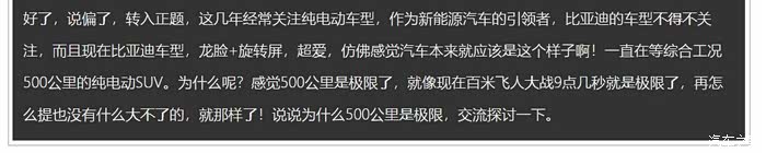 500-600公里是纯电动私家车工况续航的极限,天花板,不服来辩