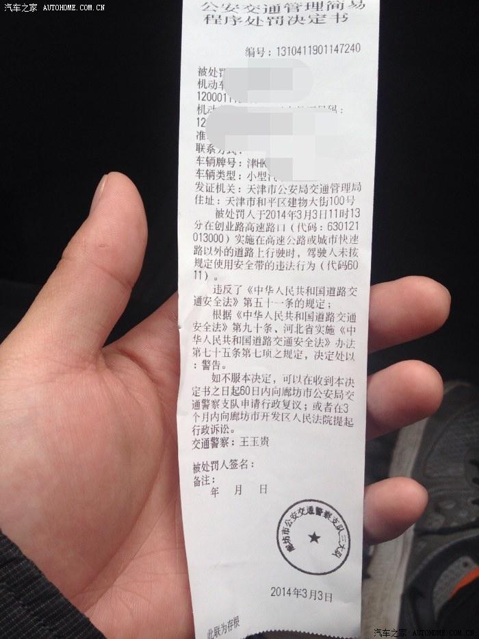 在下廊坊高速的时候被扣了,没扣分没罚钱,警告处理