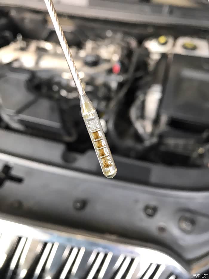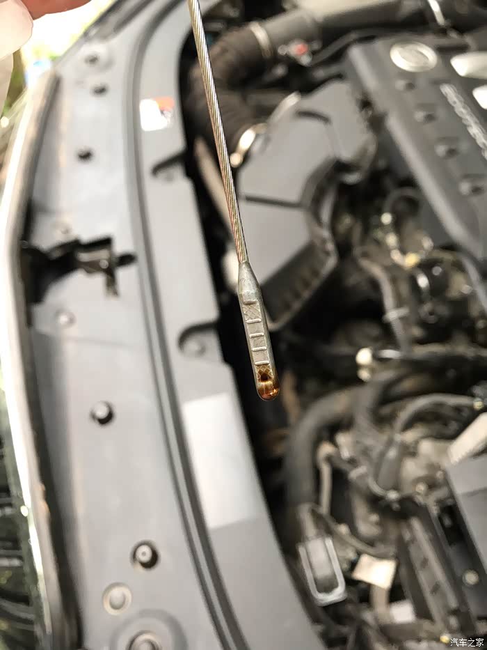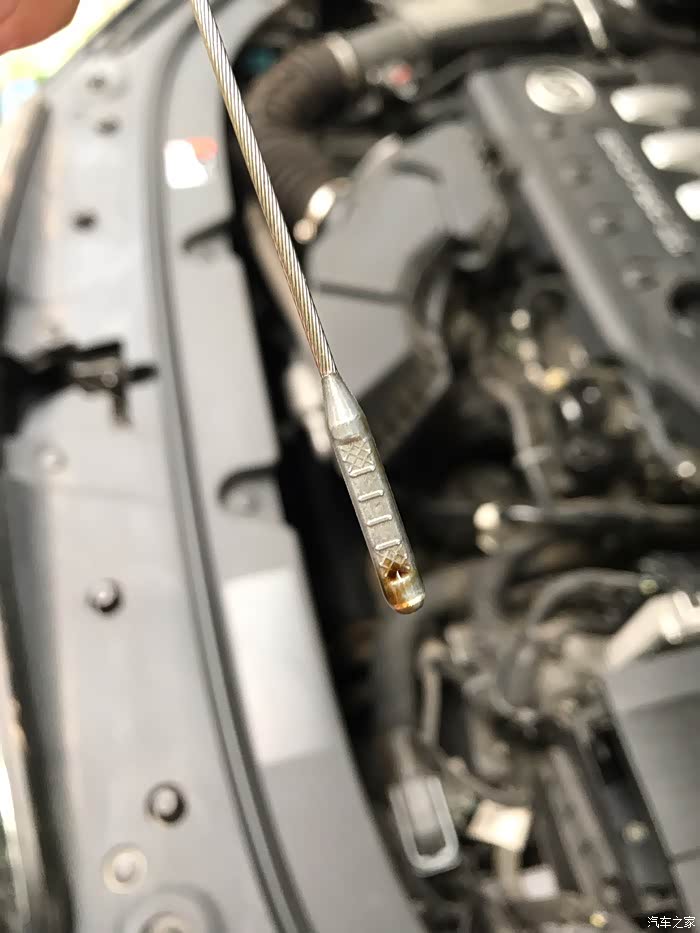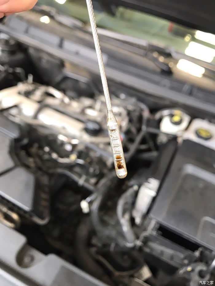 距离上次保养4900公里了,机油尺显示在最低刻度麻点3分之2的地方,揪心