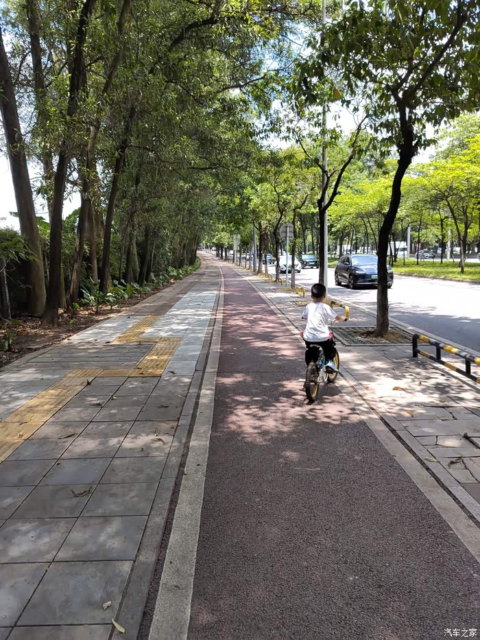 看他骑的还是非常丝滑了,又担心等会儿停下来会不会摔跤,结果路口平稳的停下来了,开心得瑟的在我们前面跳舞。