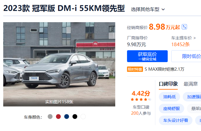 今年比亚迪把 秦DMI 价格做到了99800 现在年底冲销量 87800都可以提车 看起来心动