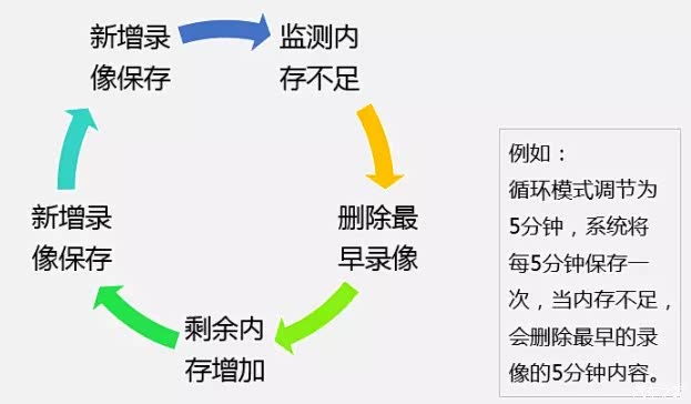 再来解释一下循环影像,就是当开启循环影像之后就不用手动删除录像,系统会根据先后顺序自动删除早期的录像内容。