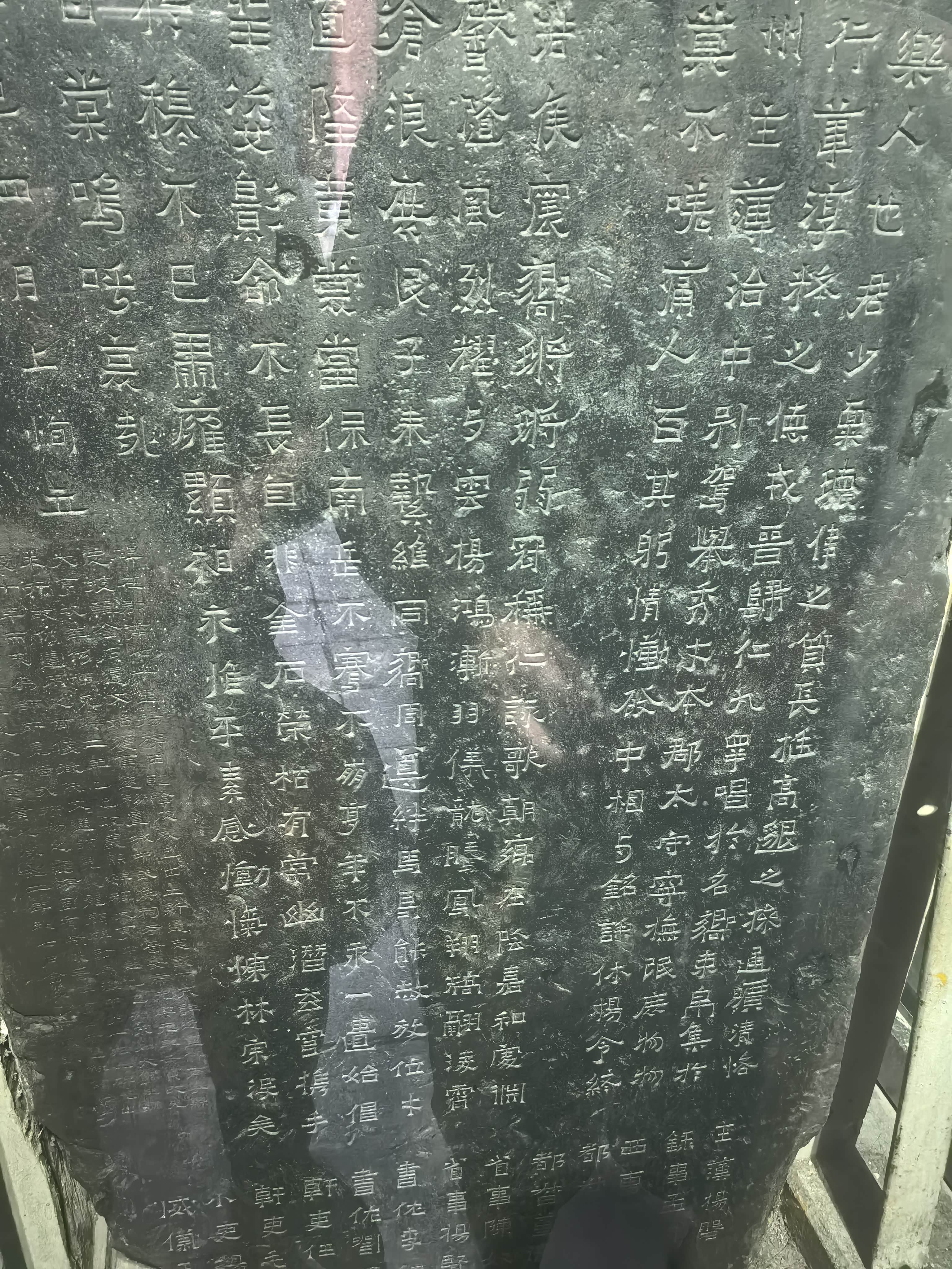 碑石虽然保护在玻璃罩子内,但还是可以近距离观赏。?