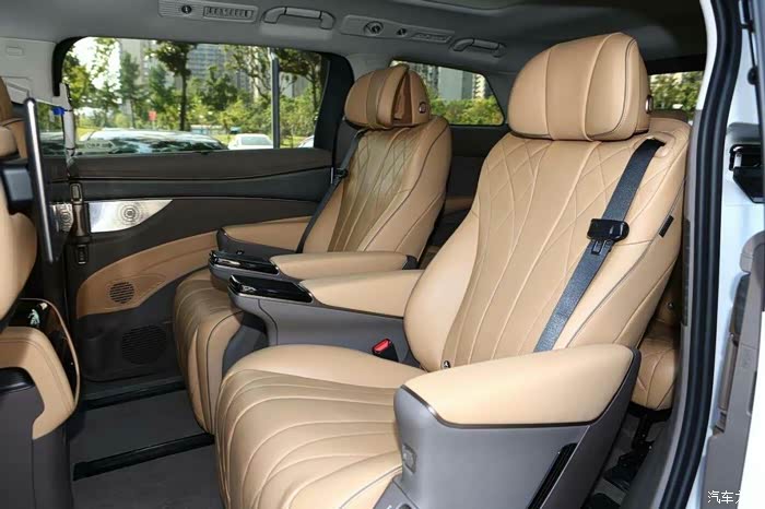 传祺E9 宗师版配备的12.3英寸液晶仪表+14.6英寸中控屏+12.3英寸副驾驶屏+15.6英寸后排液晶屏,相比腾势D9 DM-i 1040尊贵型搭载的10.25英寸液晶仪表+15.6英寸可旋转中控大屏,在科技感上有明显优势,让更多乘客获得了良好的智能座舱体验。特别是15.6英寸后排液晶屏和后排小桌板在E9宗师版车型的配备到位,满足了二排乘客的娱乐及在线办公需要,有着相当不错的功能实用性。