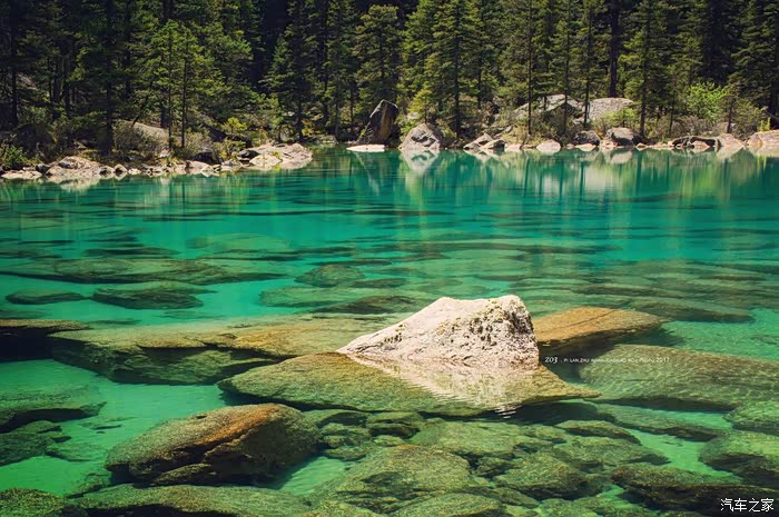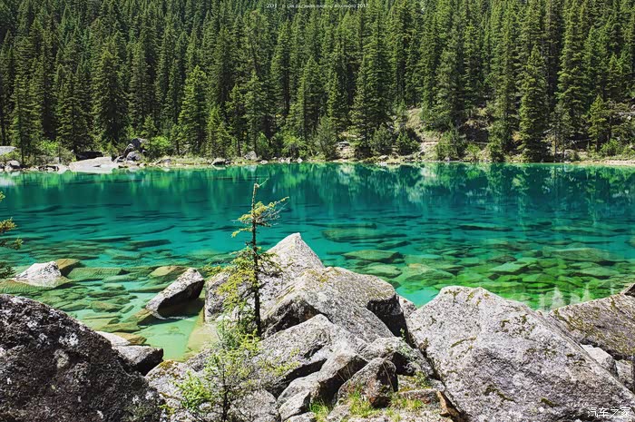 吃完饭、刚刚的雨也停了。那就准备出去玩吧、早就了解到措普寺附近还有两个小湖很漂亮、那就去看看吧。走着走着就没有路了面前只有乱石岗,爬上去,从高处依稀看到了碧绿色,没 错那 肯定就是了,翻下乱石、碧绿的湖水出现在眼前、那简直美呆了