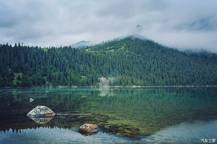 清晨的湖边尤其漂亮,湖面很静、加上云雾、就算没有太阳也美的很,