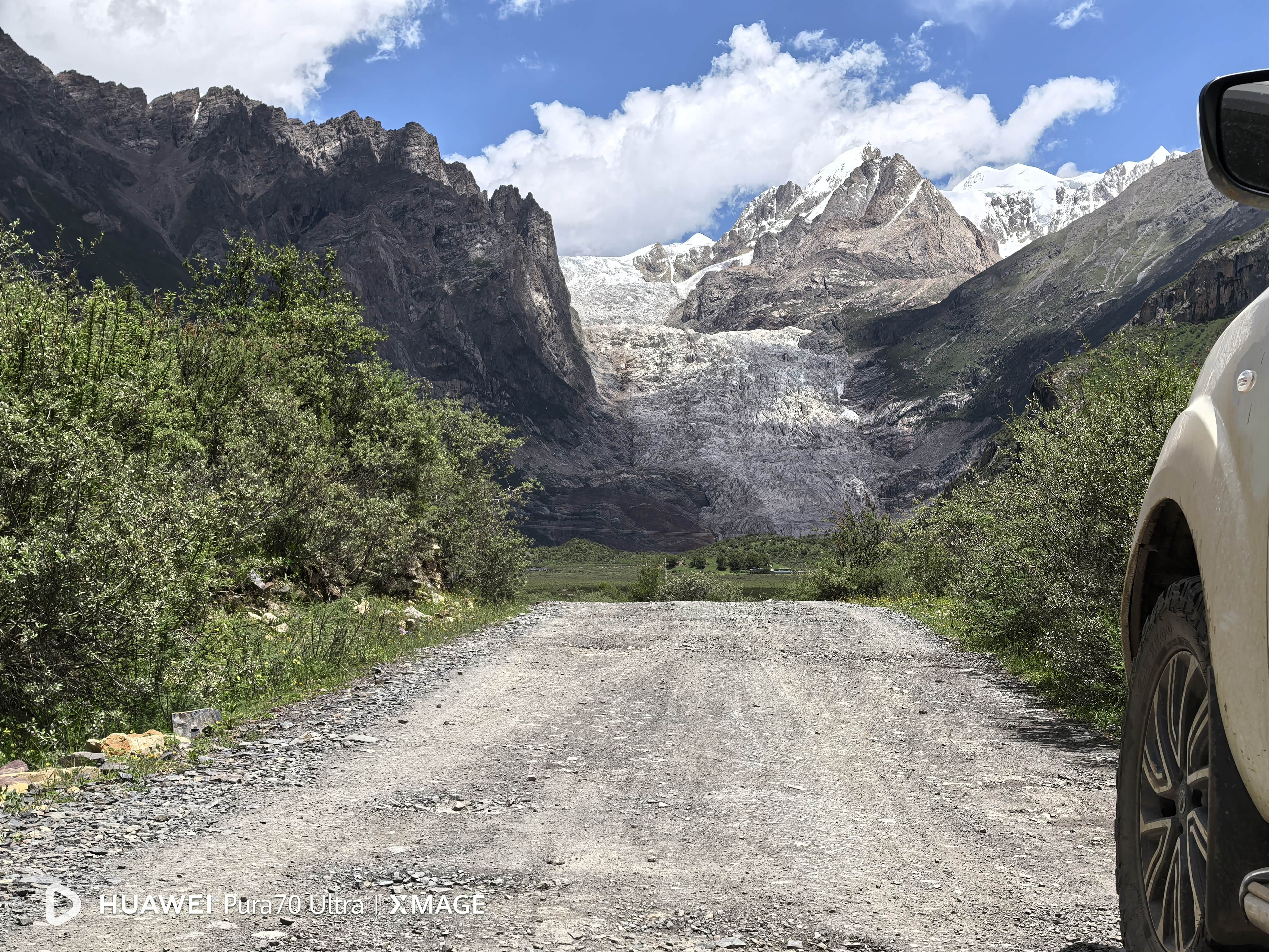 还未到荣布镇的时候,会看到一个很显眼的路牌,上面写着布加雪山,在路牌下左转进去即可。进去后有两处冰川,穹雄沟冰川就在左侧的山谷中。