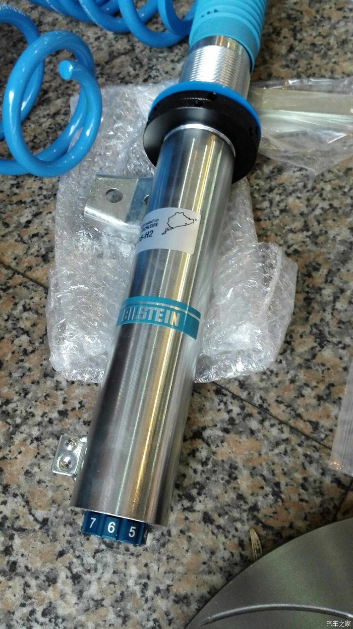 ,大家不要笑,换着是谁谁都可能这么干滴,,,上路,一个字"稳"!两个字"很稳"!在B16粗壮筒身支撑下,车身非常稳健,过弯不再倾侧摇摆给人足够的信心,过坎压减速带时车身不跳,多余的上下跳动被B16紧紧拉住,把原车压井盖(深圳马路上的井盖真不是盖的)那种心有余季的感觉全部释放,在东部华侨城上下山路上,我用手动档一直往上冲(平日车子很少),原来的弯道60码通过倾倒一片的感觉没了,现在用80码过也是稳稳当当,在B16避震筒的强力支撑下,车身倾侧控制得非常好,能让人感觉到信心在增强,直想往油门踏板加压,,,,说了那么多好的,也该说说不足了, Bilstein的风格一向以硬朗为取向,对粗糙凹凸路面很是敏感,没有太多的过滤直接反馈到方向盘上,给人的感觉是只要你走过的路你一定会记住路的好坏,与原车的感觉很不一样,原车避震过坎时感觉是跳上去,然后车身上下跳几下让人感觉失控, B16过坎感觉是撞上去但车身不会上下跳,让车子一直牢牢贴在地上。最后说说舒适性,对一个车子而言,舒适和操控是死对头大家都清楚,为什么我选B16?因为我领教过B12的硬,是死硬,不可改变的硬!考虑到车子不是我一个人坐还有全家老小,所以我选择了可调软硬的B16,虽然只开了短短两天(但我已经开了200多公里),走了曾经很熟悉的路,B16给我的感觉是,强化了操控的同时,它没有忘记舒适,回到开头写的那段话,不摇也不晃了,给我的感觉是比原车避震舒适多了,而且车子变得很听话,变线过弯很有信心,值不值或者需不需要,那就见仁见智了。先写到这,使用中有不同的感受我再发上来,大家随时交流。