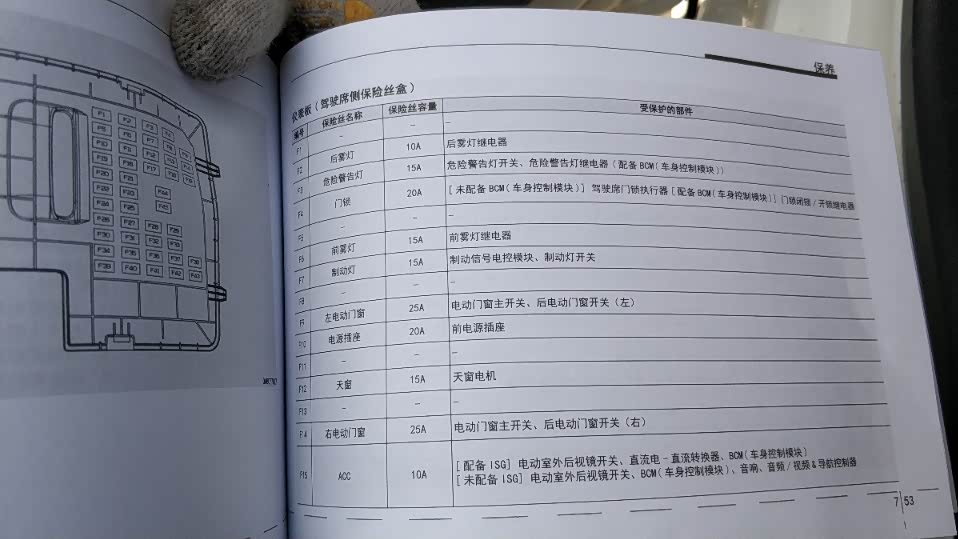 焕驰保险丝盒盖板打开,里面只有F1,F2这样的代号,没有像朗动一样标记了什么用途,想了像说明说书上应该有