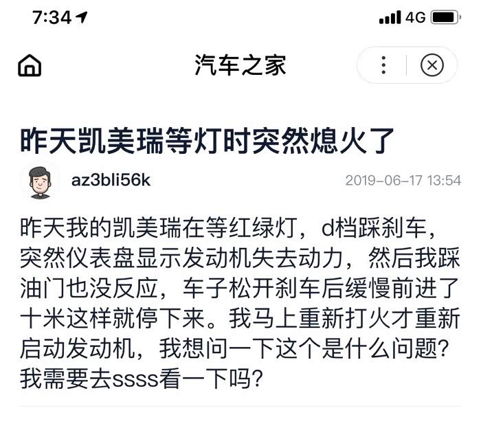 新款凯美瑞2.0车型存在严重安全隐患,发动机突失动力!
