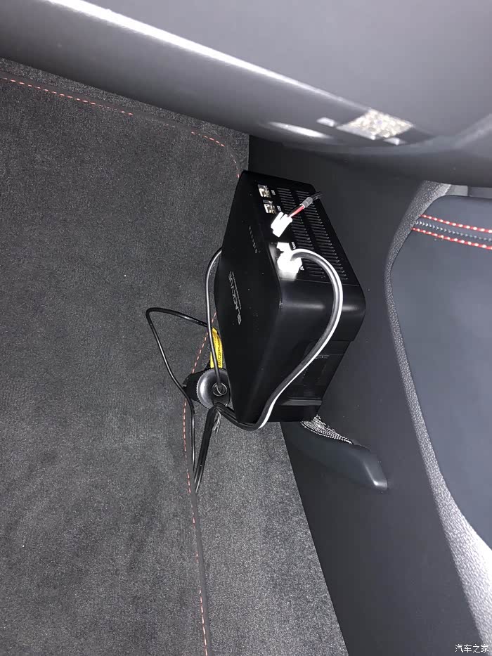 后来干脆放到后备箱,刚好有个12V电源,不过我蛮担心的是后备箱装一个这个玩意。。。 在youtube看兰博车主给他车也装了一个这个,只不过他放到了副驾驶前面储存箱。开车一个小时可以持续12小时所以为了电瓶还是很不错的。